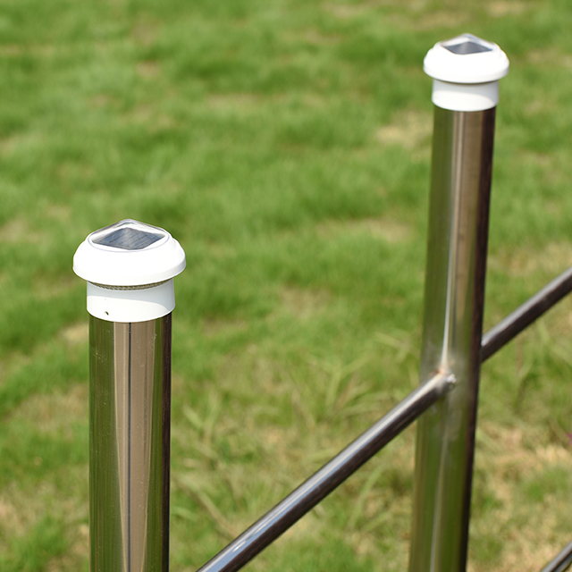 2211-CP1 WH Cerca de elo de corrente de plástico Solar Post Cap Light é um produto de iluminação eficiente e ecologicamente correto projetado para postes de cerca de elo de corrente de 2,5 polegadas, adequado para necessidades de iluminação decorativa e de segurança em espaços externos. Ele mede 85x85x70 mm e é feito de material plástico de alta qualidade, que é durável e pode suportar ambientes externos agressivos, como vento, chuva e raios UV. O poste de luz foi projetado para se encaixar perfeitamente em postes de cerca padrão de 2,5 polegadas. É fácil e rápido de instalar, sem a necessidade de ferramentas adicionais ou operações complicadas, e pode adicionar rapidamente uma fonte de luz brilhante ao seu quintal, jardim, entrada de automóveis ou área de cerca.